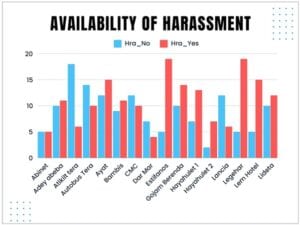 Overall, the analysis showed that most harassment incidents occurred during peak hours, especially during the daytime. Out of 367 reported incidents, 197 occurred during the daytime peak, 69 at night, and 101 during both day and night.