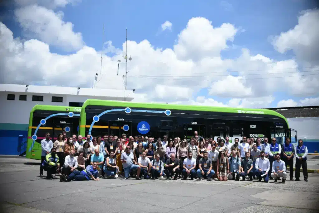 Representatives of the TUMI E-Bus Mission City Network during a technical site visit in Salvador, Brazil ©Sidnei Campos Fotografia, WRI Brasil