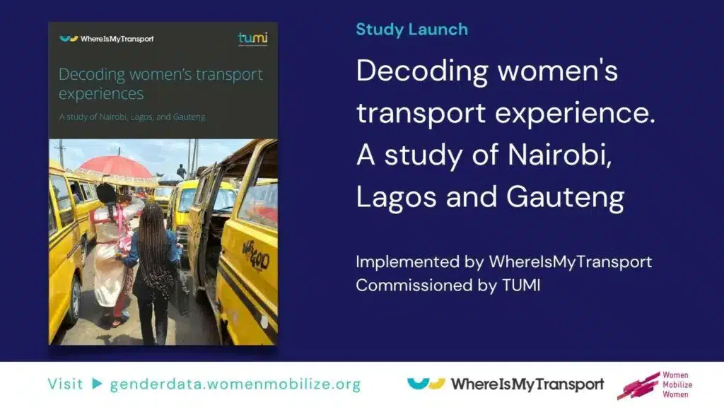 We know that gender-inclusive transport systems start with new ways of collecting data. Therefore, one of Women Mobilize Women’s priorities is the development, testing and analysis of gender-inclusive mobility data gathering. The report Decoding women’s transport experiences: A study of Nairobi, Lagos, and Gauteng is doing exactly that. Implemented by WhereIsMyTransport and launched by TUMI and Women Mobilize Women during the conference Women in Transport Africa, it is now available for download. On a dedicated website visitors can explore the study results along profiles of different groups of women using public transport. Check it out!