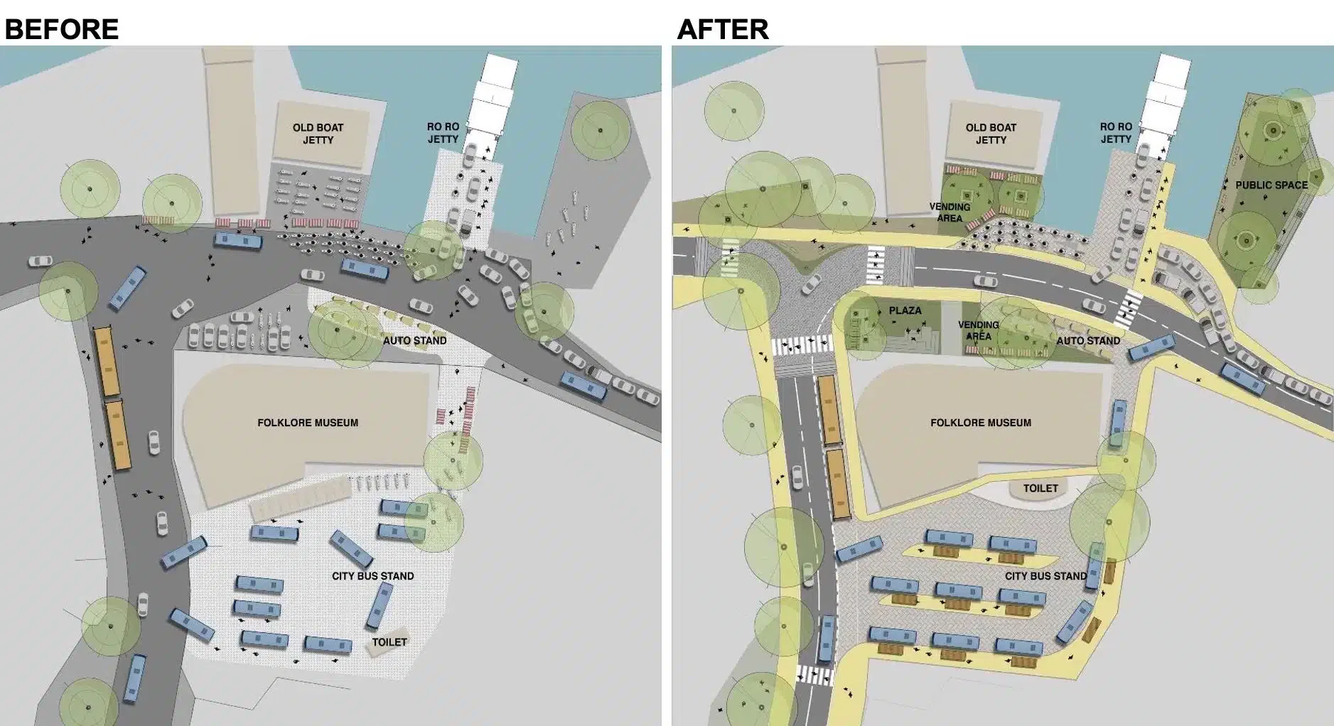 The project aims to create enhanced accessibility of the Ro-Ro jetty node, which is the main node of Fort Kochi Island in India. By improving traffic flow and coordination between different modes (public and private), including NMT, the project will show how reduced vehicular-pedestrian conflicts and enhanced walkable conditions for locals and tourists can be beneficial for all.