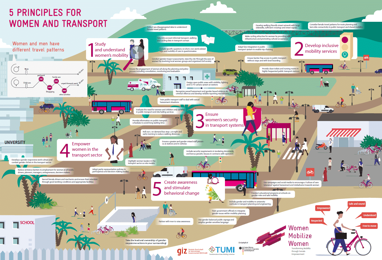 In May 2018 the Transformative Urban Mobility Initiative (TUMI) launched Women Mobilize Women as the first conference to empower women in transport, with 200 female as well as male transport experts gathering in Leipzig, Germany. Today, Women Mobilize Women is a network of female change makers from all over the world, seeking to actively transform the mobility sector to become more diverse. In addition, Women Mobilize Women aims to raise awareness to the topic of gender and transport amongst planners and decision-makers in the transport sector.