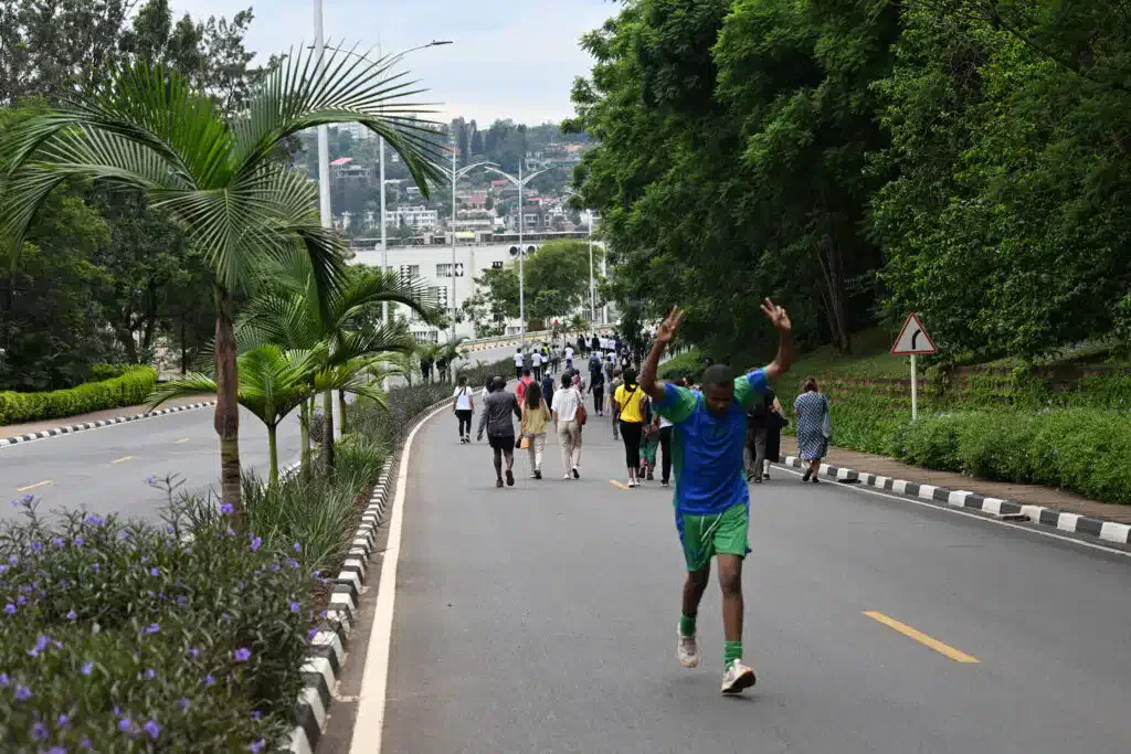 People walking in Kigali during car-free days that occurs every 2nd Sunday of the month. © Sepa Sama