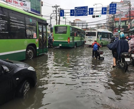 Road flooding and resulted road congestion in Ho Chi Minh City