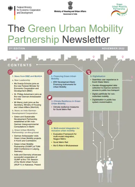 The latest edition of GUMP Newsletter was launched at the Urban Mobility India Conference 2022, mentioning the TUMI Challenge Kochi. The Mayor of Kochi Mr Anil Kumar thanked the German government for their support in implementing sustainable green mobility infrastructure, including the Kochi Water Metro. He emphasised the city’s ambition to improve cycling tracks and pedestrian infrastructure.