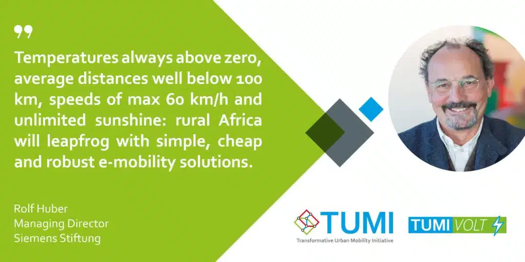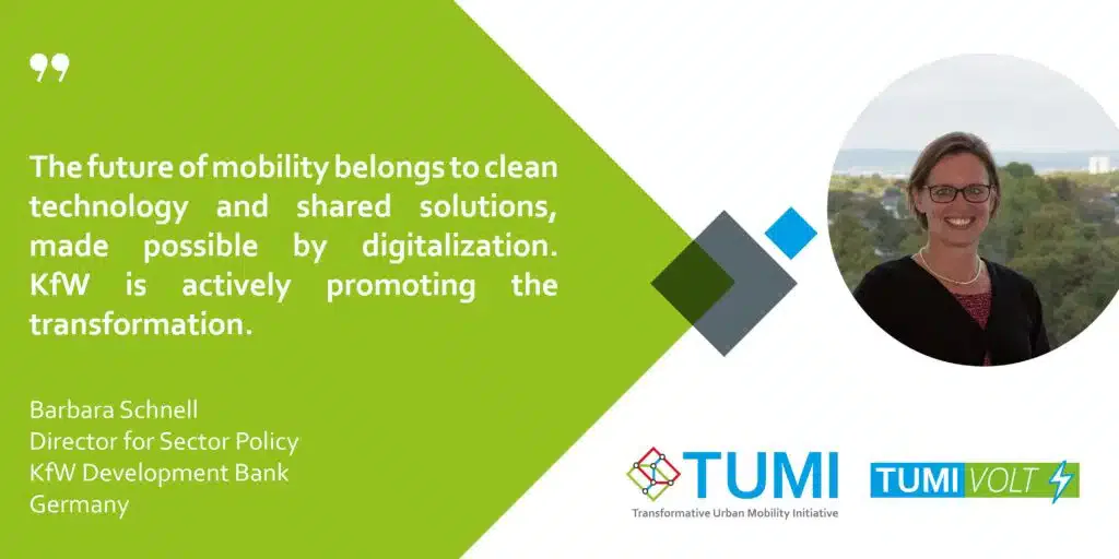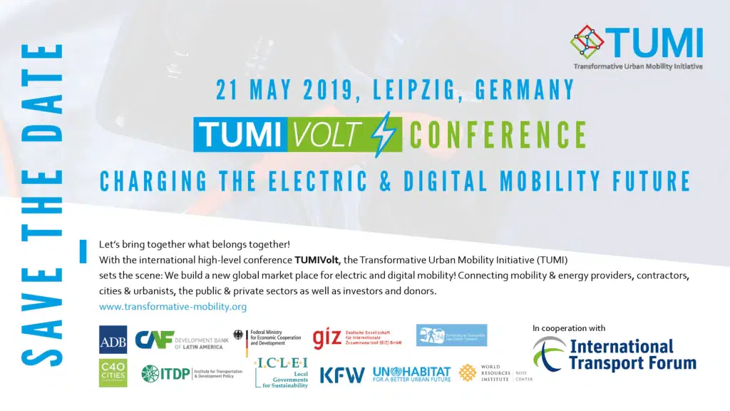 Let’s bring together what belongs together! With the international high-level conference TUMIVolt, the Transformative Urban Mobility Initiative (TUMI) sets the stage: A new global market place for electric and digital mobility. On May 21, 2019 in line with the International Transport Forum (ITF) we connect you with mobility and energy providers, contractors, cities & urbanists, the public and private sectror as well as investors and donors.