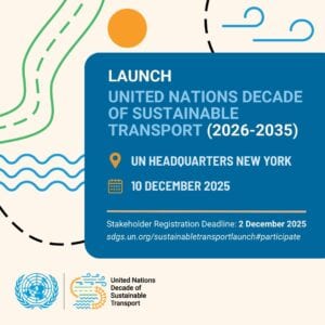 In 2023, the General Assembly declared the first ever United Nations Decade of Sustainable Transport to start in 2026. The General Assembly, through resolution 78/148 titled “Strengthening the links between all modes of transport to achieve the Sustainable Development Goals” also called for the United Nations Department of Economic and Social Affairs (DESA) to develop an Implementation Plan for the UN Decade of Sustainable Transport, in collaboration with the UN Regional Commissions and in consultation with the Member States, the United Nations system and all other relevant stakeholders.