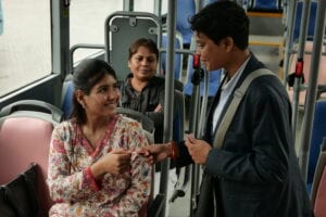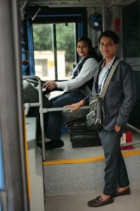 “E-bus made traveling easier for working women like me,” Shalini says, adding that earlier many women used to be scared to travel by bus, especially at night.